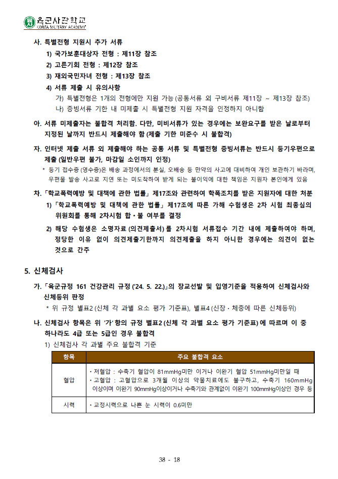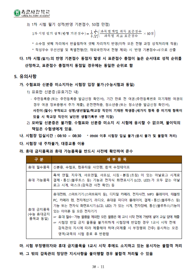 2026학년도 육군사관학교 입시요강(세부사항)