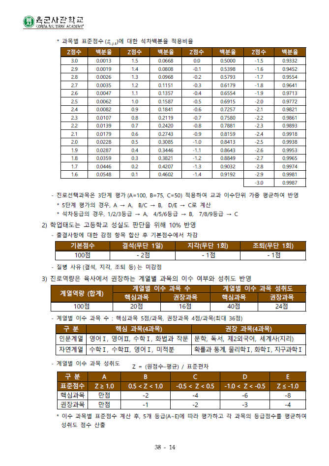 2026학년도 육군사관학교 내신성적